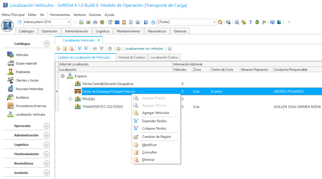 Para asignar o cambiar una localización a una región, damos clic derecho sobre una localización y seleccionamos como se muestra en la siguiente imagen.