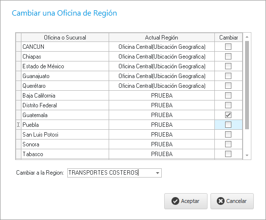 De esta manera abriremos la siguiente ventana en la cual podemos observar todas las localizaciones, actualmente en que región se encuentran y podemos asignarlas a otras.