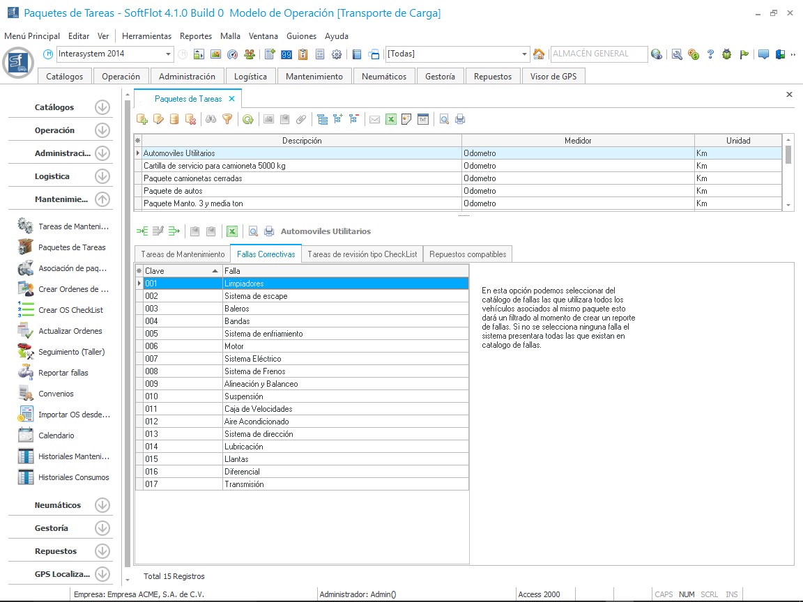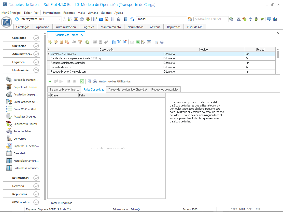 Para asociar las fallas correctivas al paquete, debemos de seleccionar en la parte inferior la pestaña "Fallas Correctivas" y damos clic en el botón como se muestra en la siguiente imagen.