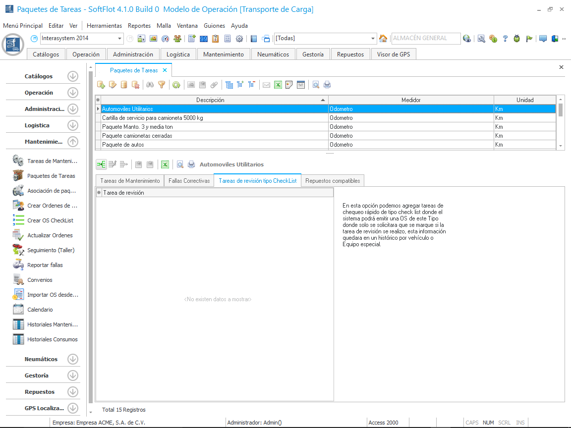 Para asociar las Tareas de CheckList al paquete, debemos de seleccionar en la parte inferior la pestaña "Tareas de revisión tipo CheckList" y damos clic en el botón como se muestra en la siguiente imagen.