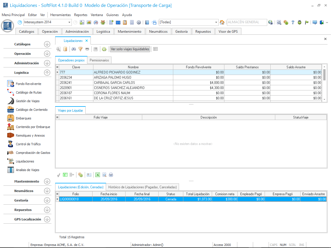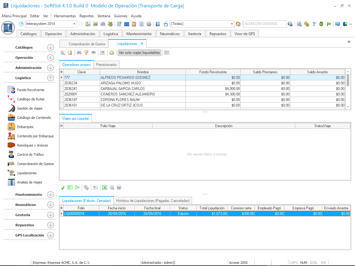 Para Autorizar o cerrar una liquidación, debe de estar en la pestaña de "Liquidaciones (Edición, Cerrada)" en la parte inferior de la malla principal como se muestra en la imagen.