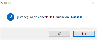Si al revisar la liquidación no es correcta la información registrada, podemos eliminarla con el botón el cual al hacer clic nos muestra el siguiente cuadro de dialogo en donde decidiremos si realizar esta operación o no.