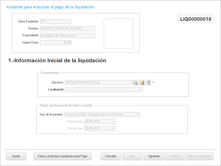 Y por último, al hacer clic en el botón , nos abrirá la misma ventana que el botón , pero con la diferencia del botón que nos permite cerrar y Autorizar la Liquidación como se ve en la siguiente imagen.