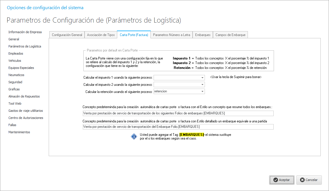 En esta sección podemos seleccionar la manera por la cual se realizaría el cálculo de impuestos mediante un proceso; estos procesos son creados por medio de la herramienta Administrador de Procesos de Usuario.