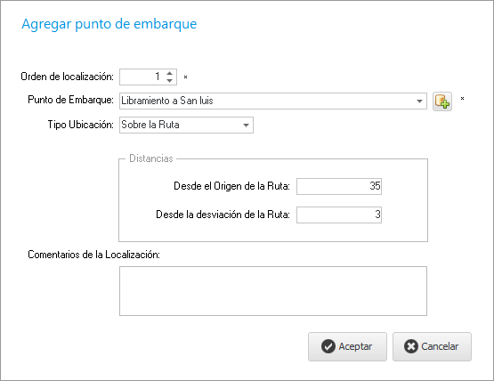 Al dar clic, nos abre la siguiente ventana en donde debemos ingresar la siguiente información para agregar la ruta.