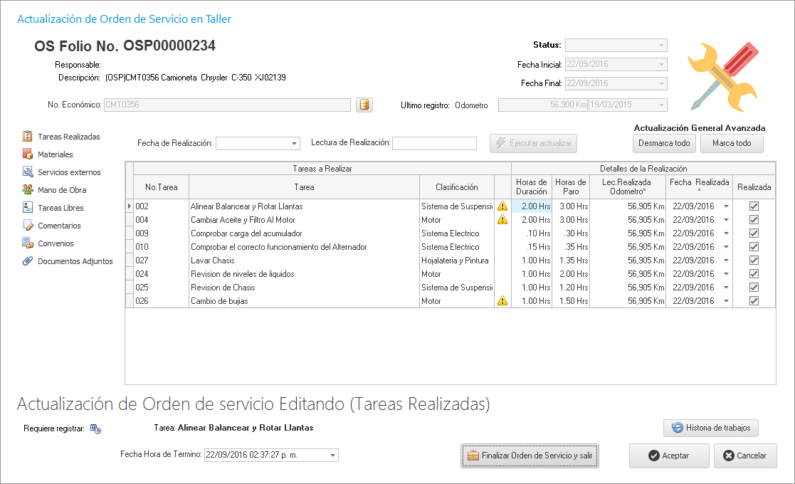 Una vez hecho esto, hacemos clic en el botón de la malla principal como se muestra a continuación para dar salida real al vehículo del taller para finalizar el proceso y cerrar la OS.
