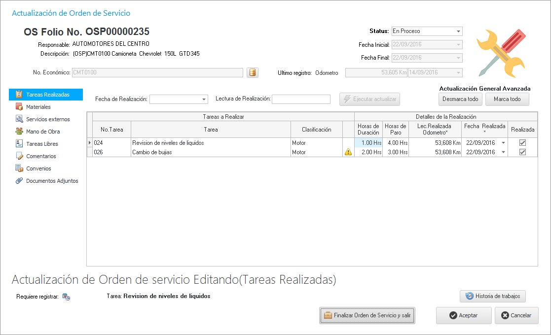 Cerrar una OS en Actualizar