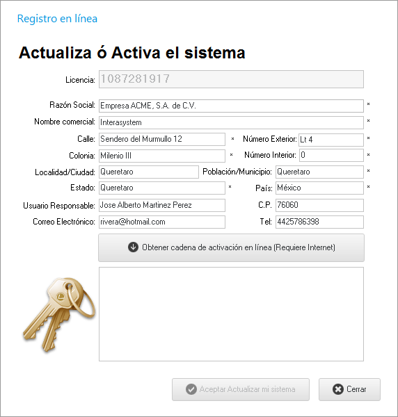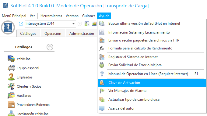Para agregar el complemento, debemos de abrir desde el menú [Ayuda \ Clave de Activación] como se muestra en la siguiente imagen.