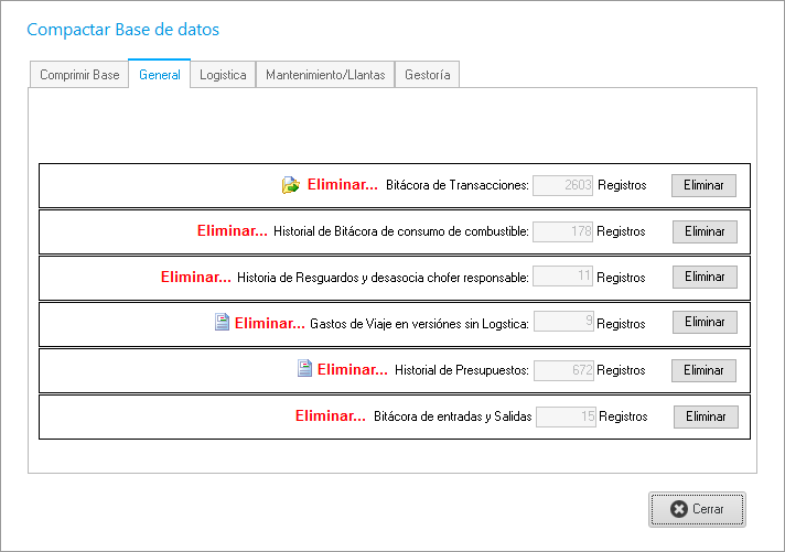 Los registros que podemos eliminar desde esta herramienta están divididos en estas pestañas:
