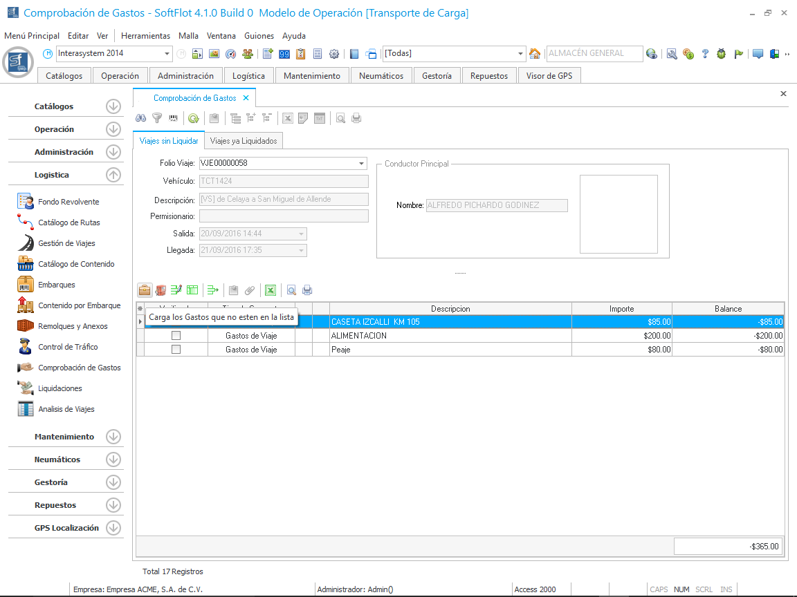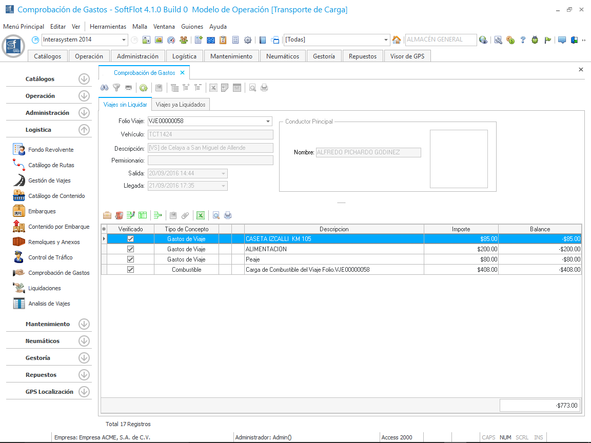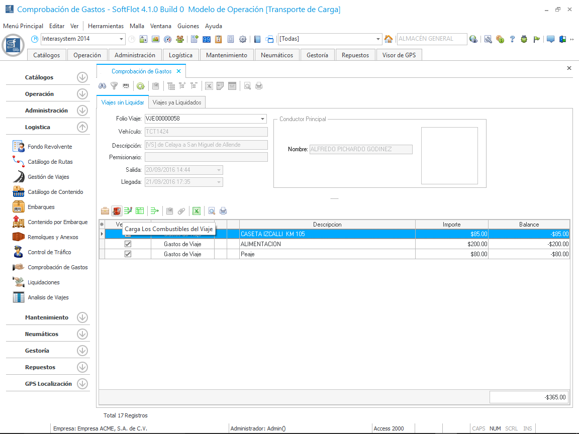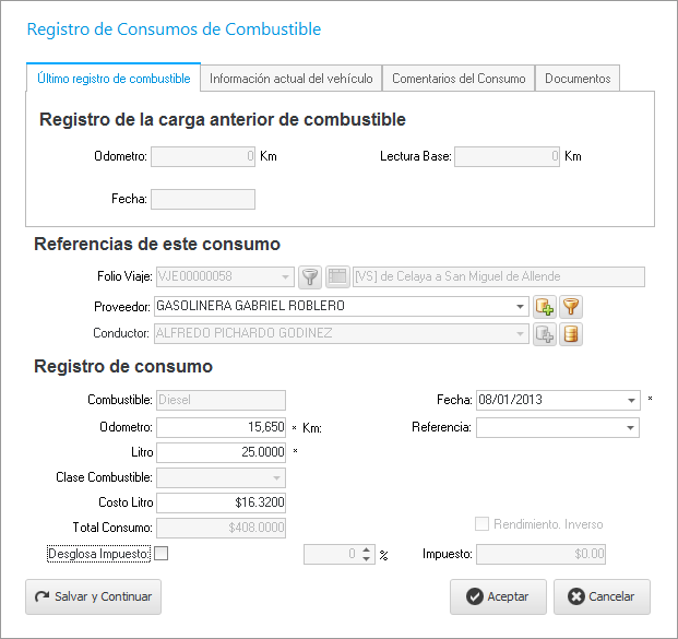 Al darle clic en Aceptar, nos generará el registro con el concepto Combustible.