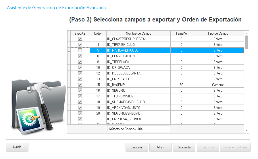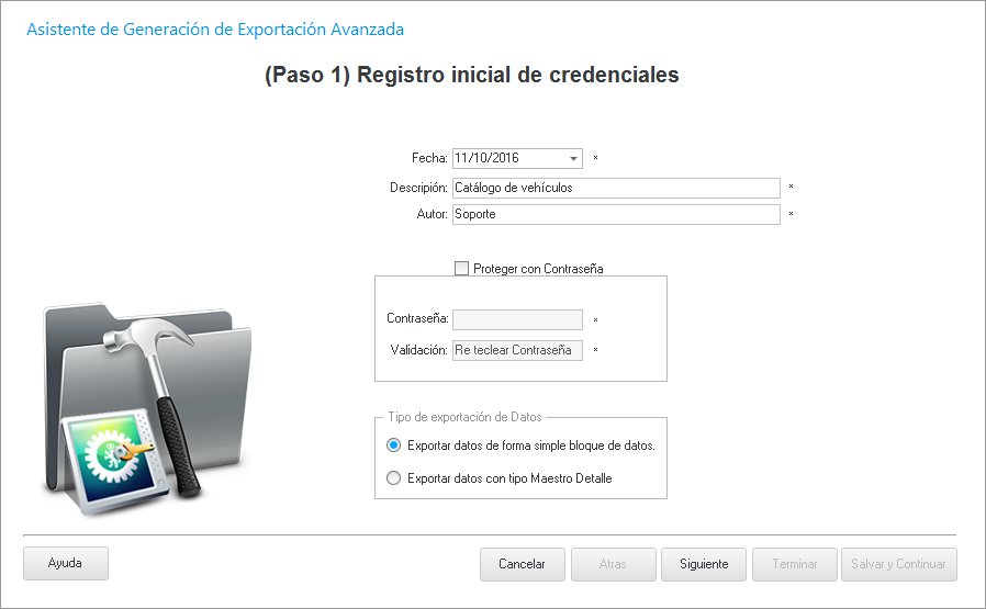 Hacemos clic en Siguiente y nos muestra la información solicitada en la cual podemos decidir que información deseamos exportar.