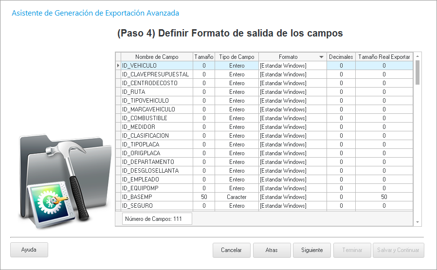 Una vez eliminado los registros no necesarios, hacemos clic en Siguiente el cual podemos definir el formato de los campos que contiene la consulta realizada.