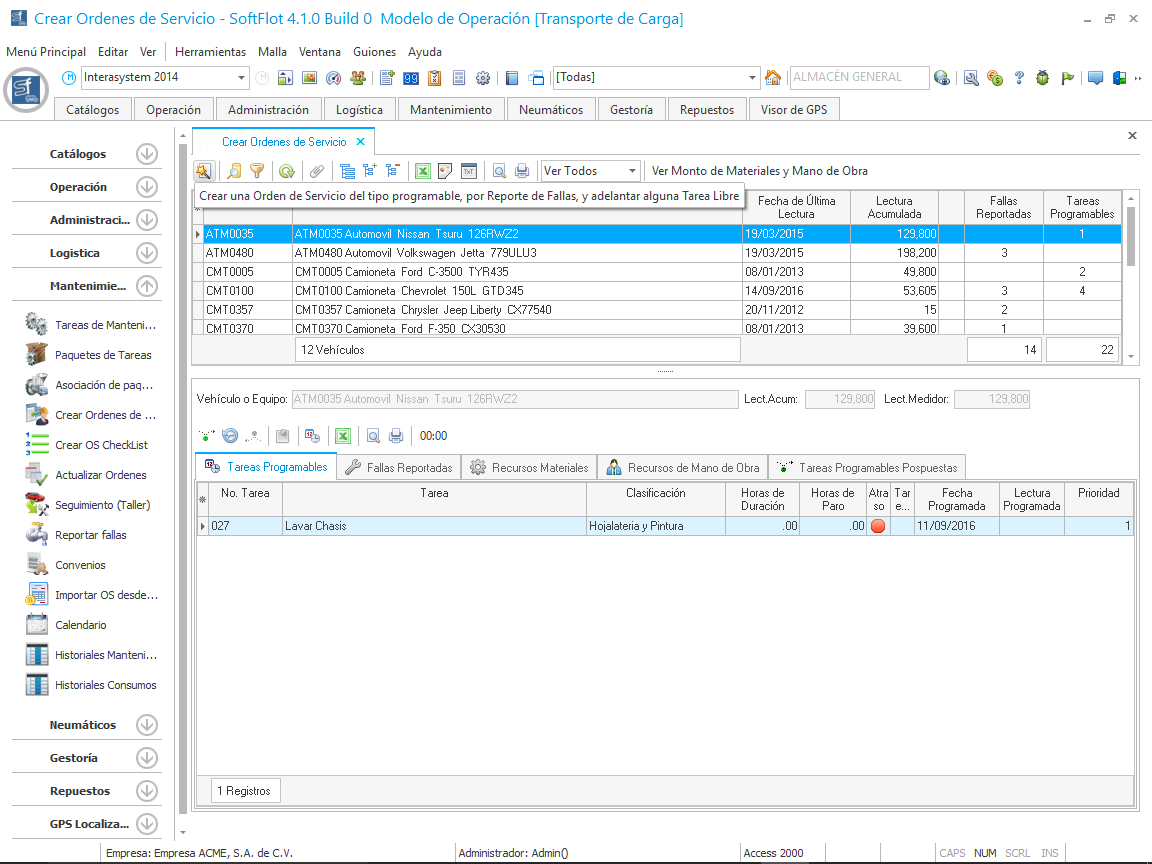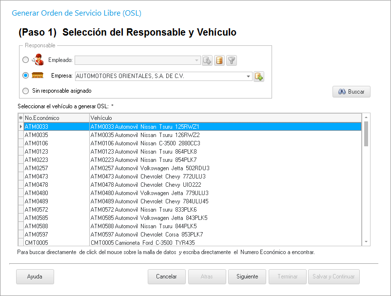 Al hacer clic en Aceptar, nos muestra la siguiente ventana en donde seleccionaremos el responsable quien realizará las tareas de mantenimiento y el vehículo.