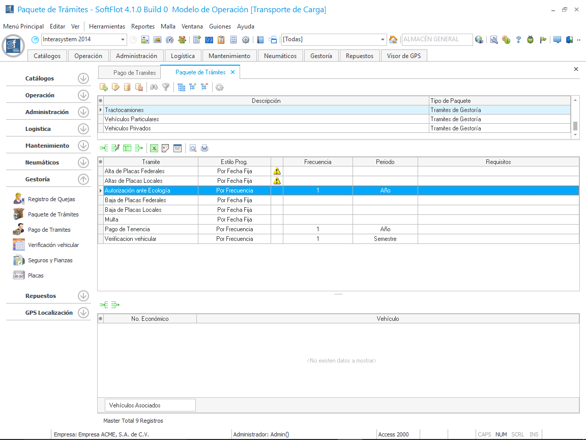 Ahora, lo último paso es asociar los vehículos al paquete con los trámites correspondientes.