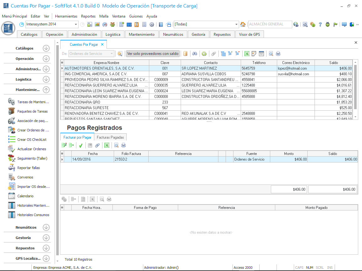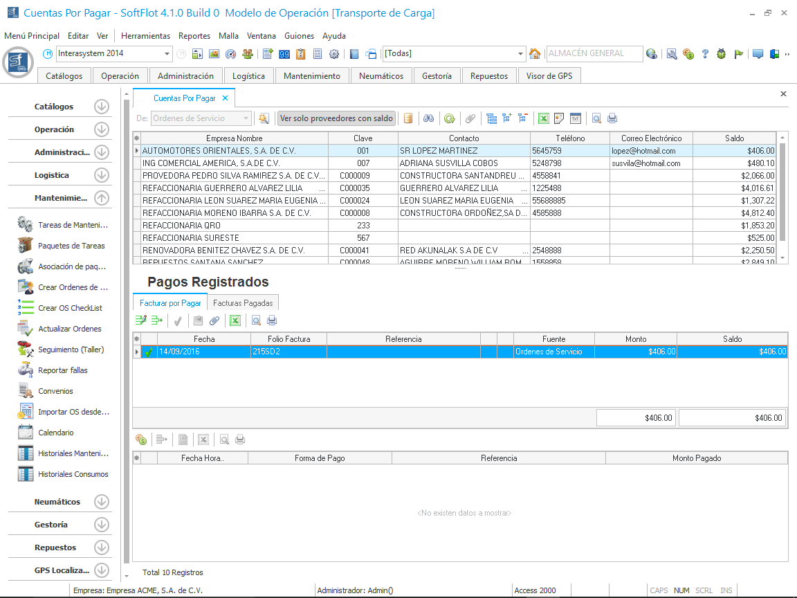 Después en el módulo de Cuentas por Pagar, utilizaremos el asistente para generar el folio a pagar de la orden de servicio utilizando el botón que se encuentra en la malla principal.