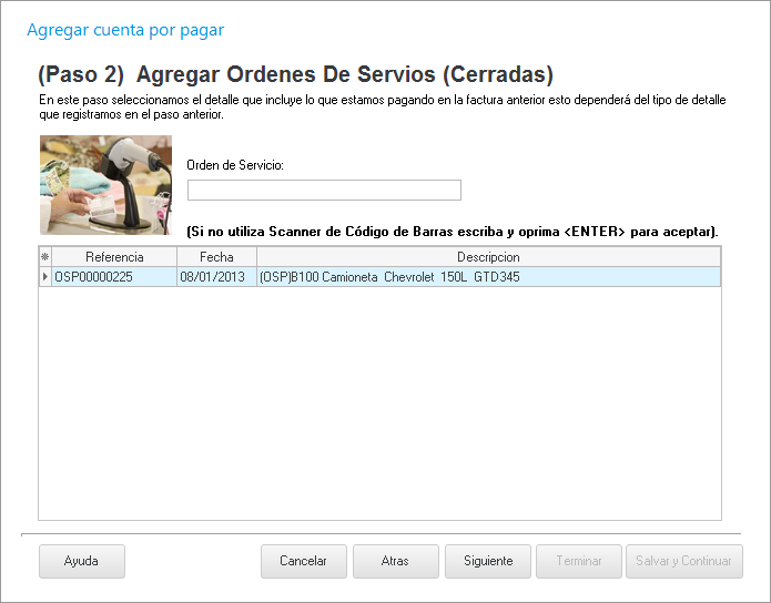 Una vez abierto el asistente, seleccionaremos primero al proveedor quien realizó la Orden de Servicio.