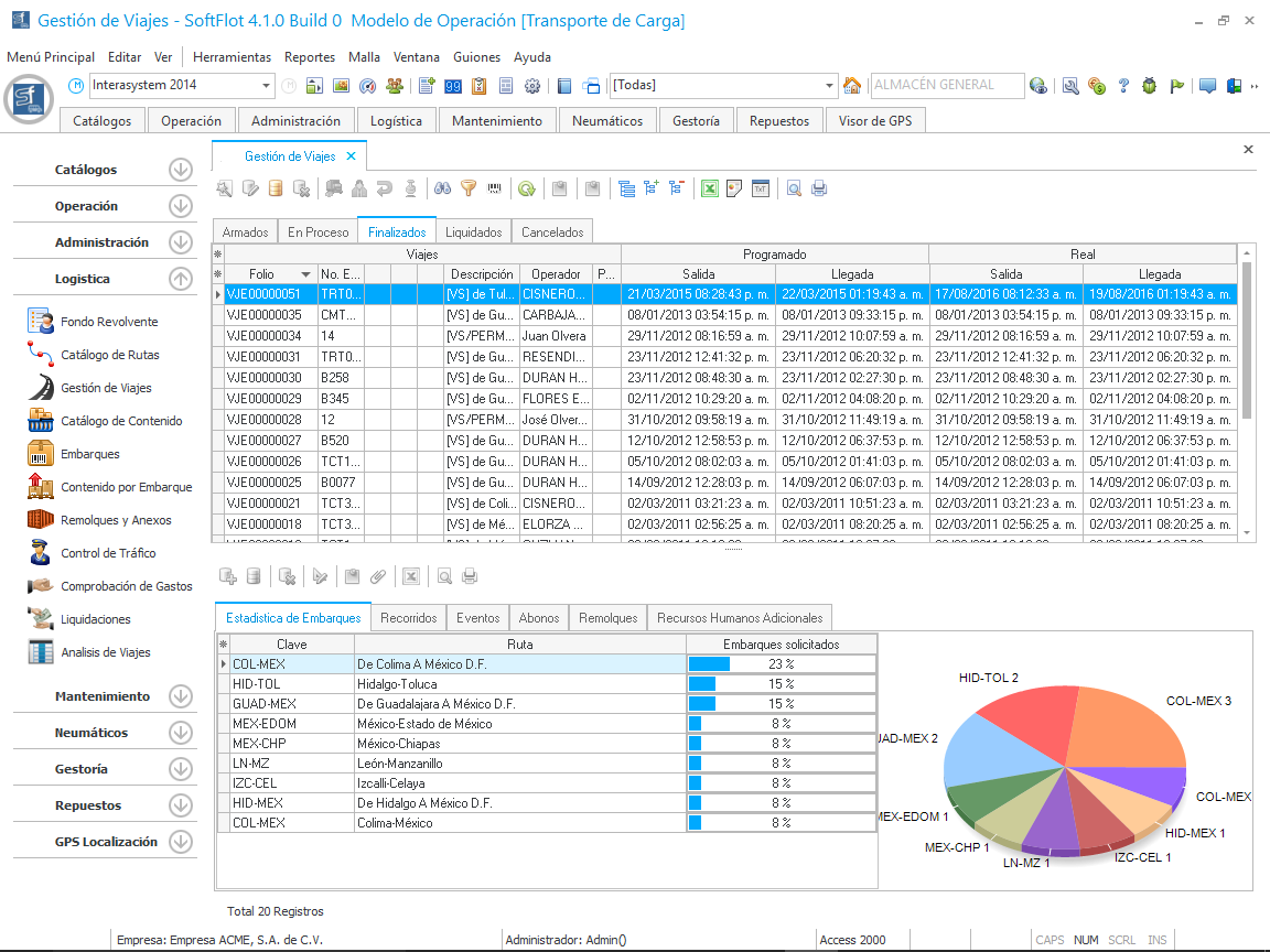 De esta manera, el estatus del viaje pasa a Finalizado y lo podremos ver en la malla principal en la pestaña con dicho estatus como se muestra en la siguiente imagen.