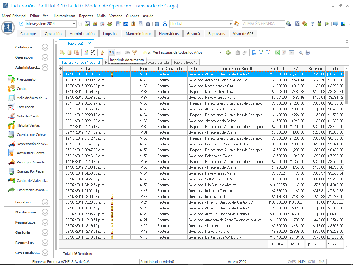 Una vez hecho esto, nos mostrará que ya se ha realizado el sellado con el icono en la malla principal. Ahora podemos imprimir la factura en un archivo PDF haciendo clic en el botón como se muestra en la siguiente imagen.