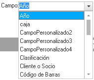 Desde aquí seleccionamos el campo sobre el cual deseamos aplicar el campo, solo desplegamos las opciones con la flecha en la parte derecha