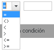Aquí seleccionamos el tipo de condición que tomará el filtro sobre la información, de igual manera seleccionamos la flecha de la parte derecha para desglosar las opciones.
