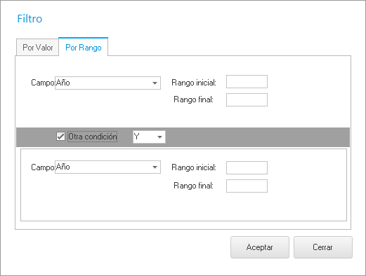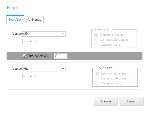 En el cual podemos seleccionar un rango de búsqueda, por ejemplo; un rengo de fechas, un rango de km recorridos, etc. Y además, podemos manejar más de una condición como en la primera opción.