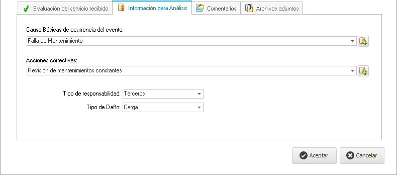 En esta pestaña podemos ingresar información adicional para la investigación del mismo Siniestro, si es necesario, o de alguna otra información adicional que requiera agregar al caso.