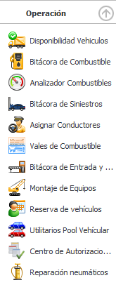 En este grupo podemos controlar los registros de combustible de nuestros vehículos, el seguimiento de siniestros ó accidentes de la unidades ademas contamos con un registro detallado de asignación de conductores para tener la seguridad de un adecuado cuidado y responsabilidad de los vehículos utilizados montaje de equipos especiales y control de vehículos del pool o también llamados comodines de préstamo también un registro de reparación de neumáticos durante los viajes