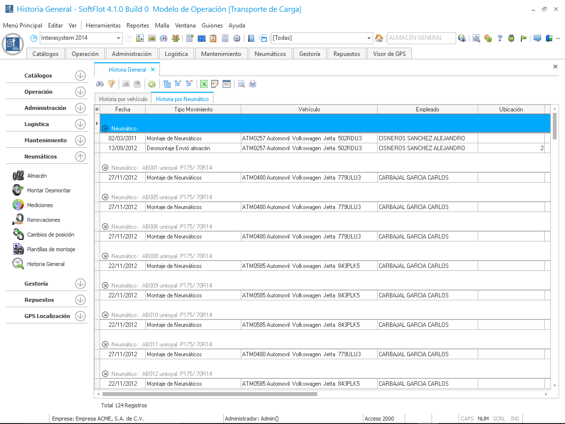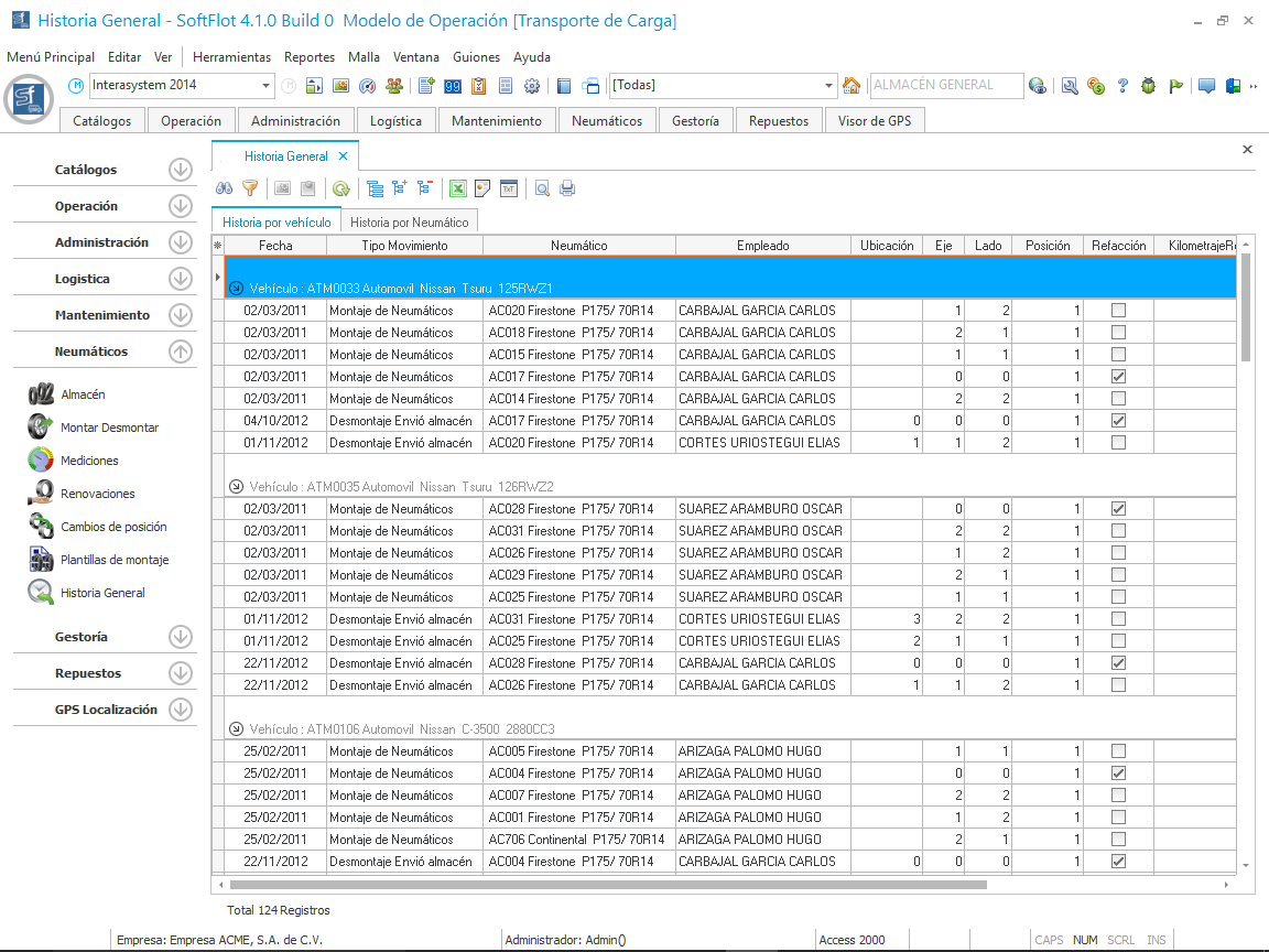 En este módulo usted puede ver todos los movimientos relacionados con los neumáticos, montaje, desmontaje, cuando y quien lo realizó. Esto los puede ver de las siguientes dos maneras