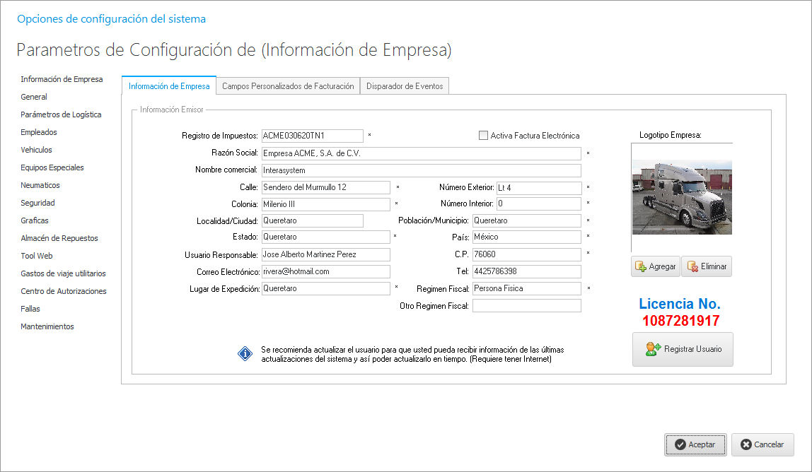Ahora registraremos el Catálogo de Proveedores Externos, Clientes y Socios; de esta manera podemos Gestionar Viajes a nuestros clientes o definir los socios propietarios de nuestros vehículos entre otras cosas.