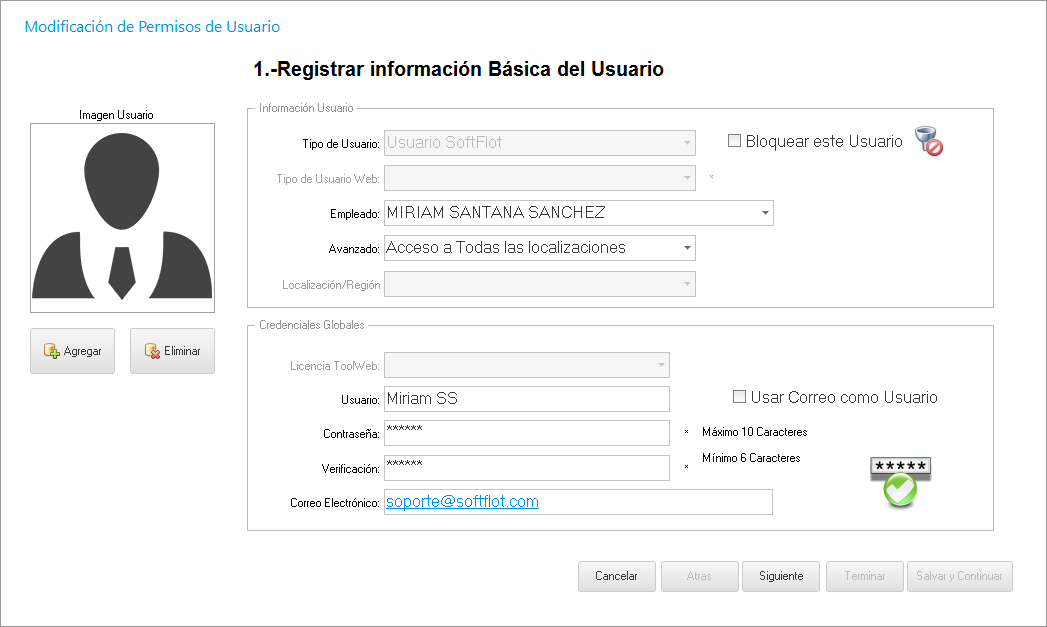 SoftFlot nos permite crear varios usuarios a los cuales podemos limitar los accesos a ciertos módulos e incluso ciertas operaciones por ejemplo; podemos dar de alta registros y modificar, pero no podemos eliminar o generar reportes. Podemos limitar a los usuarios por localización o región, de esta manera solo podrán observar y modificar la información que pertenezca a dicha localización.