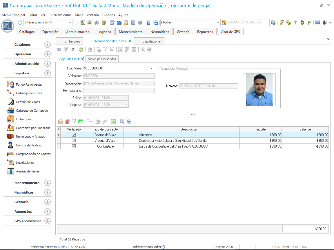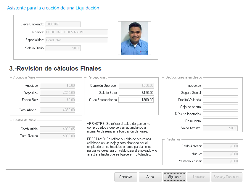 De esta manera al realizar las Liquidaciones nos mostrarán como concepto de abonos del viaje, combustible (si este lo lleva), entre otros.