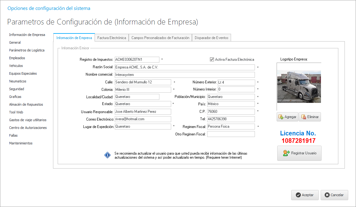 Además podemos configurar campos personalizados para facturación de nuestra empresa y disparadores de eventos los cuales permiten hacer interfaces con otros programas.