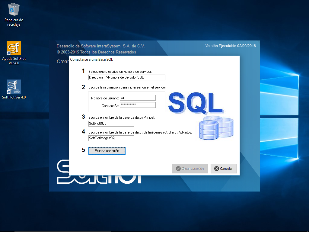 Entrar al Icono que dice SoftFlot y dar información referente a la base de datos SQL Server ya antes definidos de la siguiente manera: