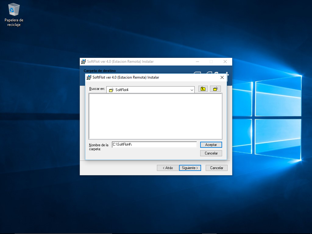 En ésta ventana emergente, cambiaremos la ruta predefinida por la siguiente "C:\SoftFlot4\", y damos clic en Aceptar.