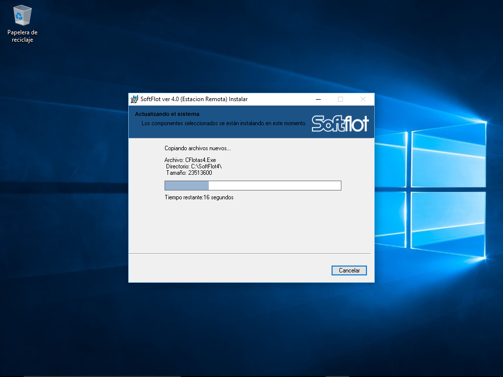 Ahora, después del cambio de ruta, damos clic en Siguiente en esta y la próxima ventana para que el asistente comience con la instalación del SoftFlot.