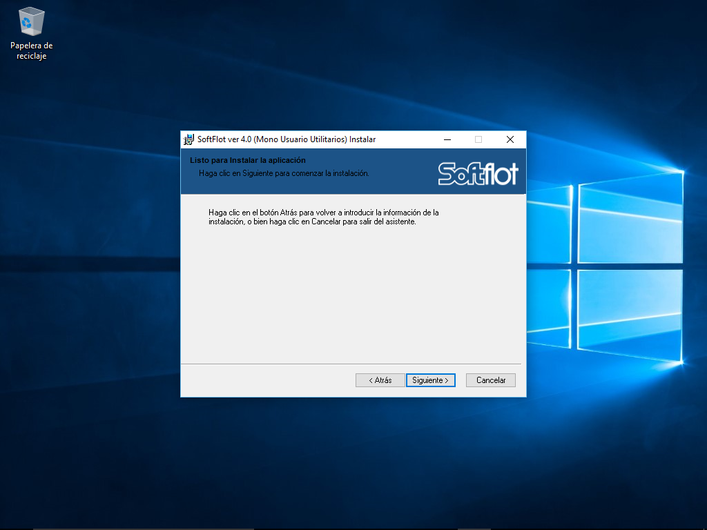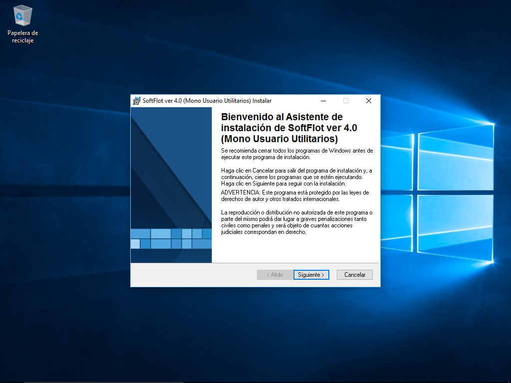 Por medio del siguiente asistente, instalaremos el SoftFlot Monousuario, damos clic en el botón siguiente.