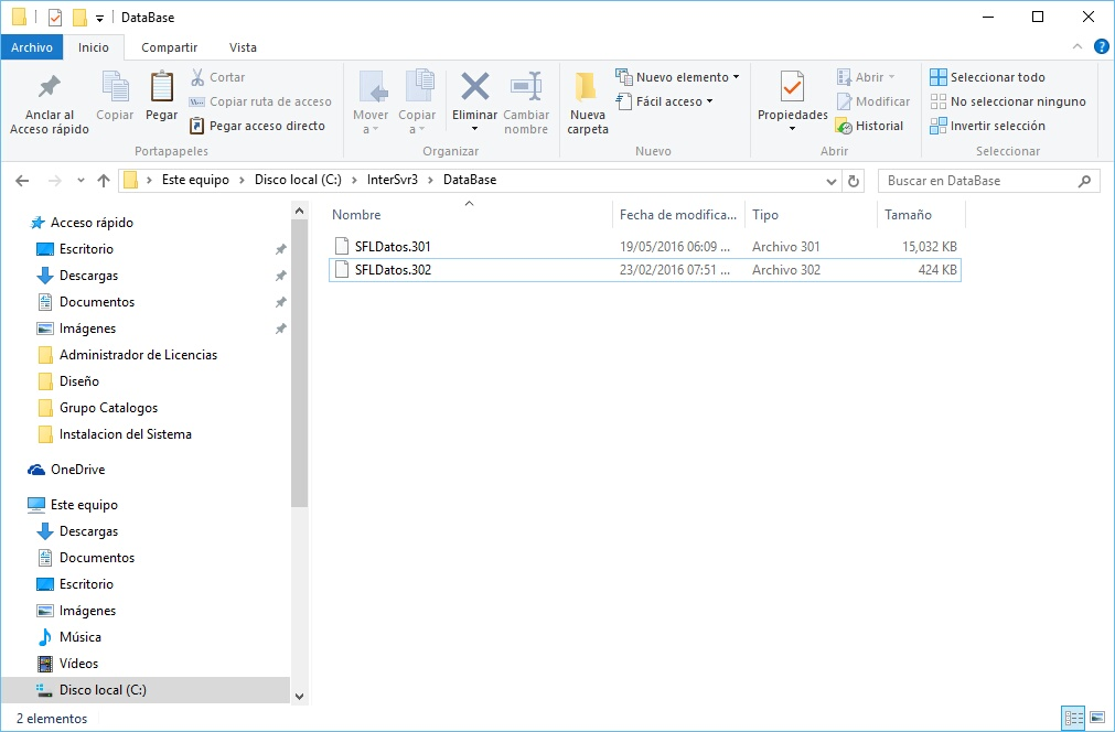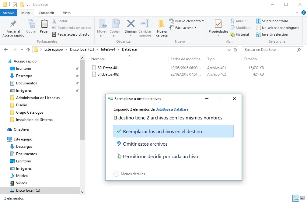 Después, deben renombrar como SFLDatos.401 y SFLDatos.402 respectivamente; y al final reemplazar estos archivos en la carpeta ......\InterSvr4\DataBase que generó la instalación del SoftFlot4 como se muestra el la ventana: