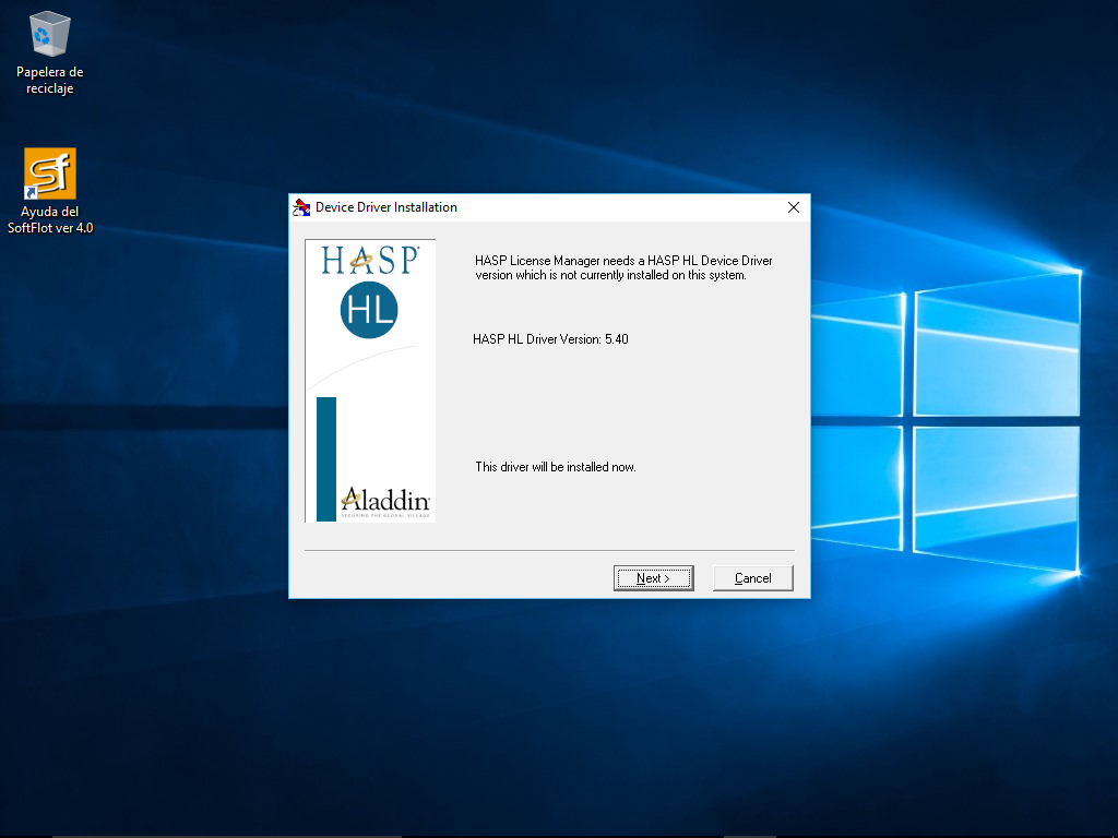Esta ventana nos muestra que se ha instalado el controlador (driver) del candado Hasp de manera correcta.
