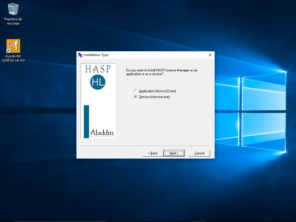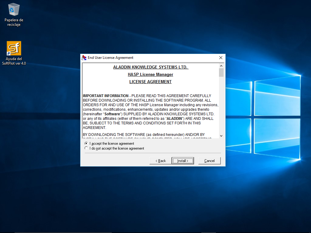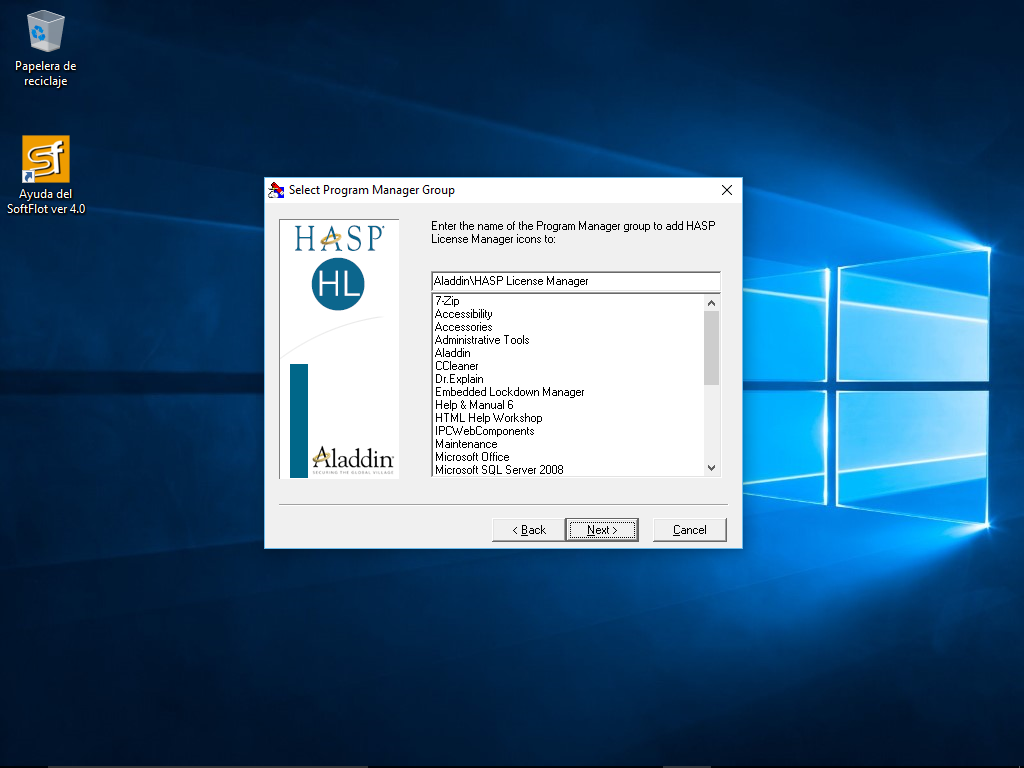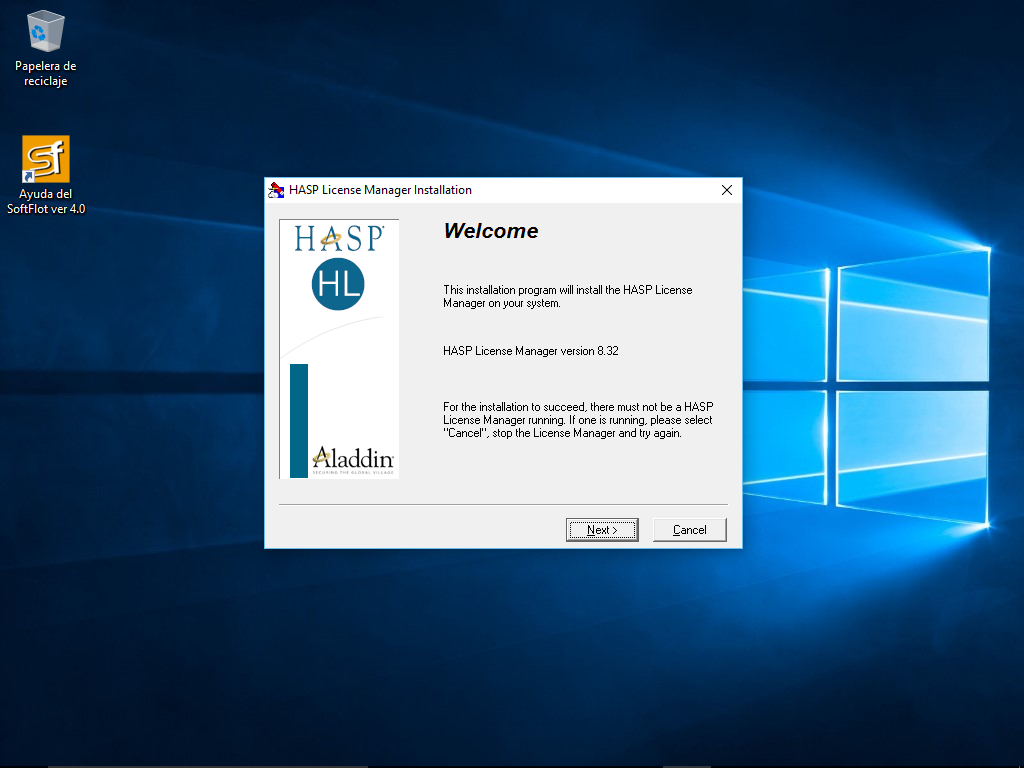 En esta ventana nos muestra la versión del Administrador de licencias Hasp que se instalará.