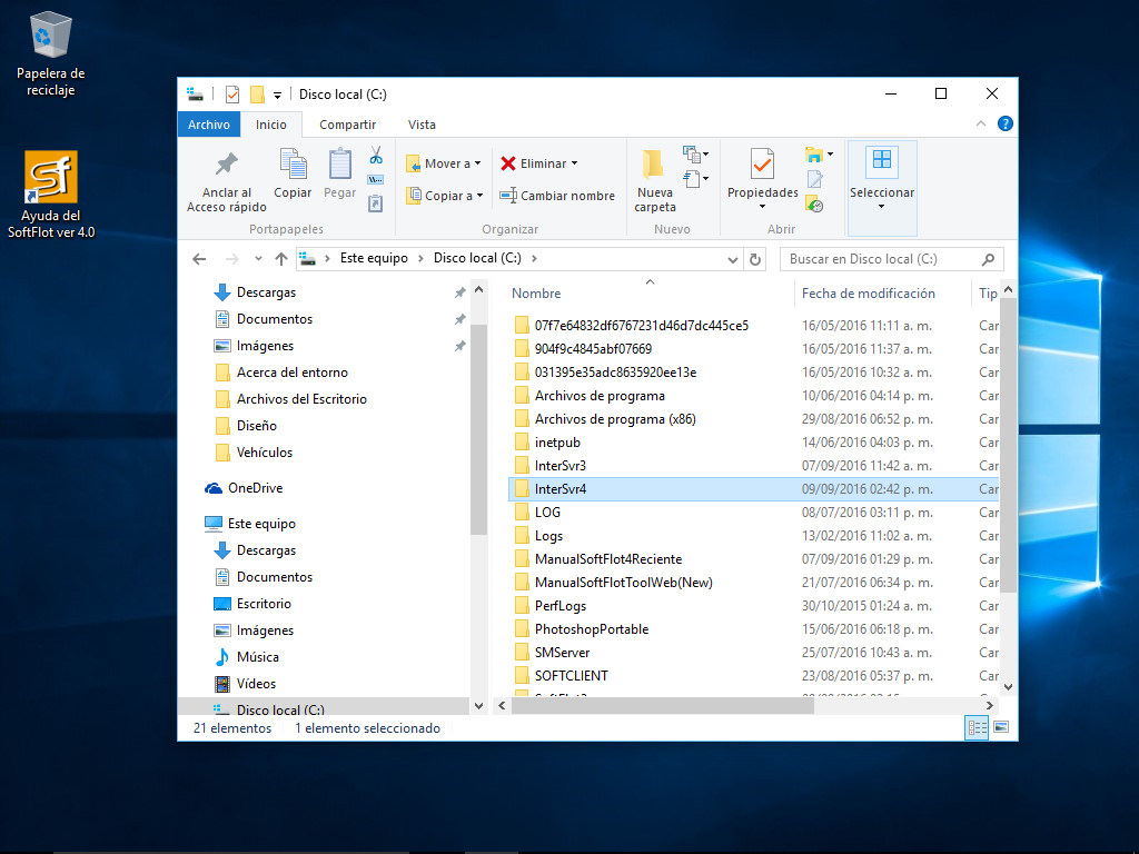 Primero debemos buscar la carpeta donde se instaló la versión Server, en este caso se instaló en "C\InterSvr4"