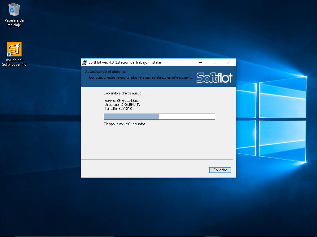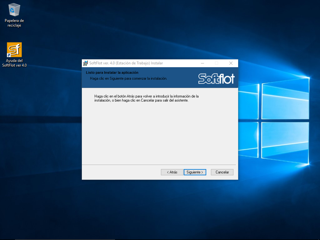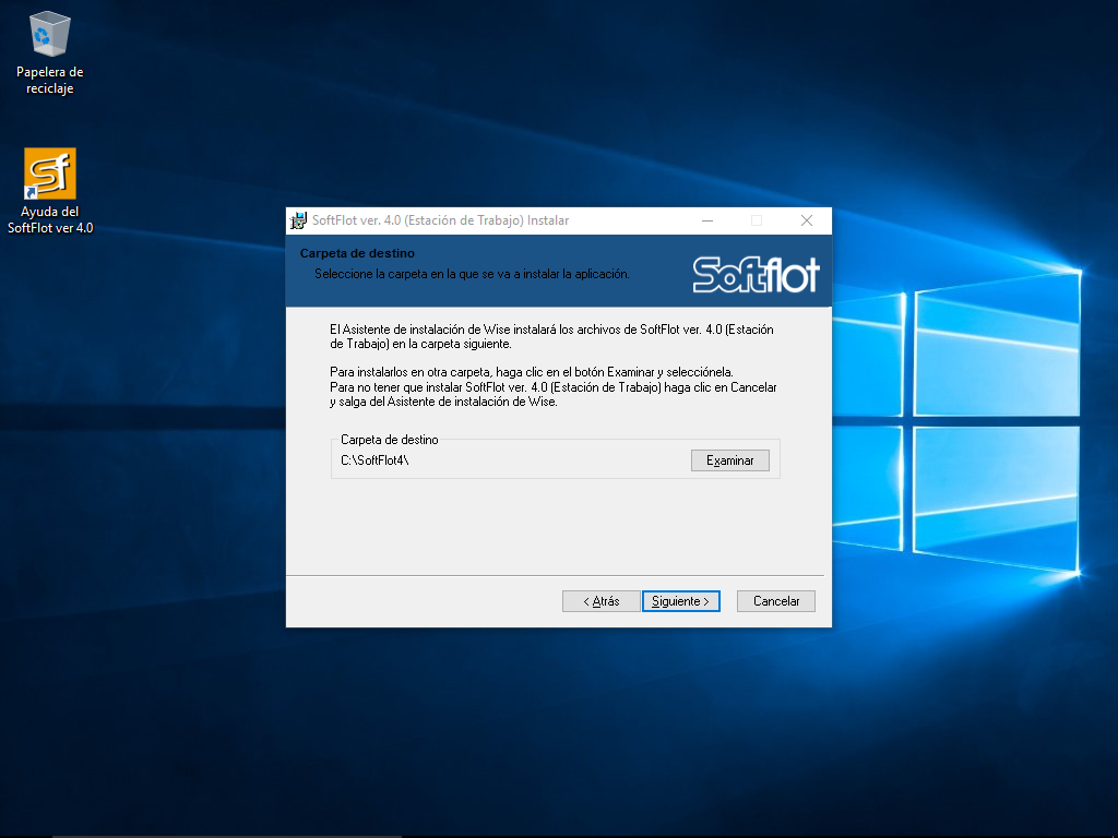 Ahora, después del cambio de ruta, damos clic en Siguiente en esta y la próxima ventana para que el asistente comience con la instalación del SoftFlot.