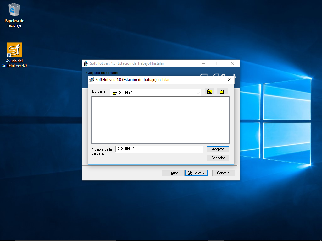 En esta ventana emergente, cambiaremos la ruta predefinida por la siguiente "C:\SoftFlot4\", y damos clic en Aceptar.