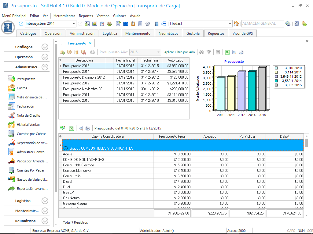En este módulo usted puede registrar su presupuesto autorizado por la empresa, desglosando cada conceptos, para crear los conceptos se tienen que registrara el módulo de Catálogo de Auxiliares en la Sección de Costos y Presupuestos.