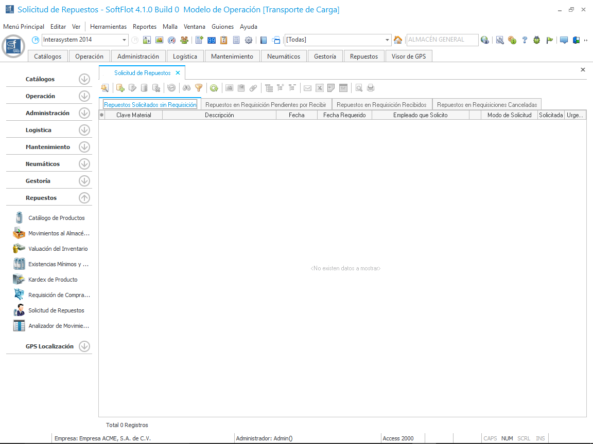 Y ahora podemos ver los repuestos solicitados en la malla principal en espera de hacer una Requisición de Compra de Repuestos.