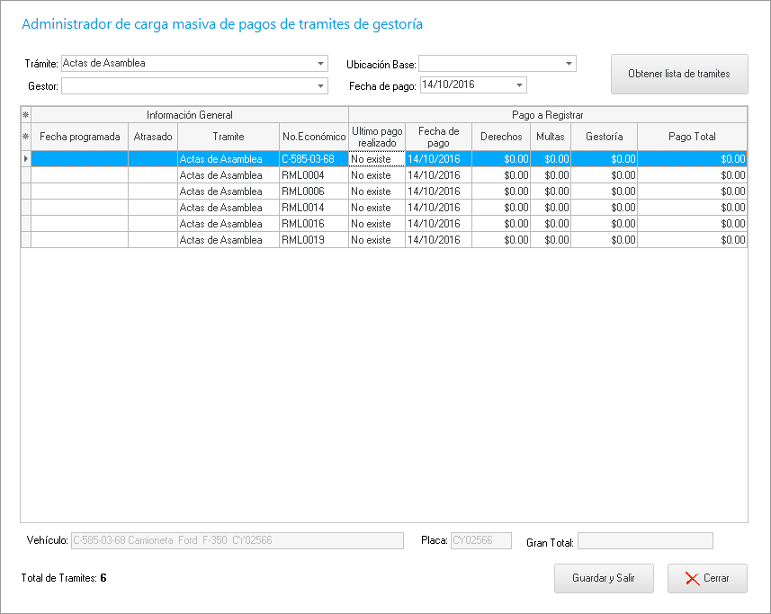 - Fecha de Pago, actualiza la información de todos los registros con esta información.