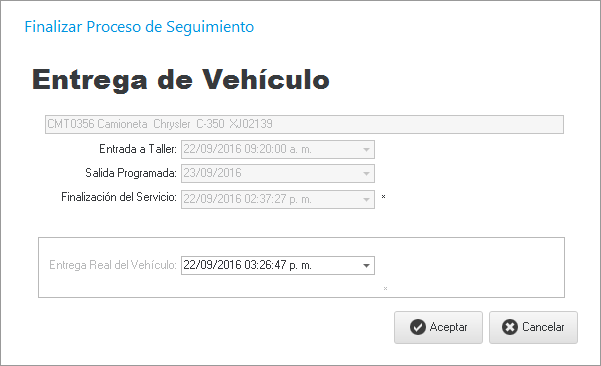 Una vez hecho esto, hacemos clic en el botón de la malla principal como se muestra a continuación para dar salida real al vehículo del taller para finalizar el proceso y cerrar la OS.