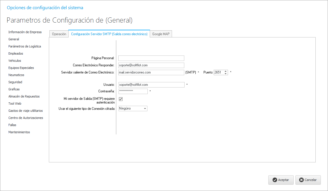 Configuración Servidor SMTP