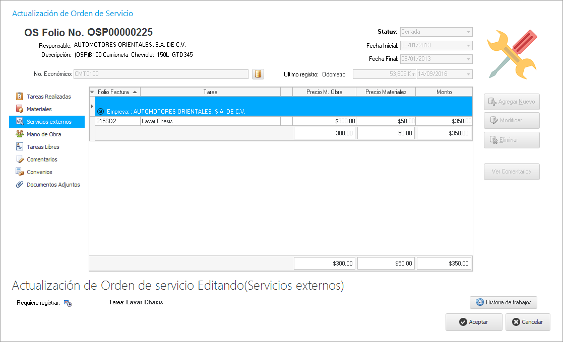 Damos clic en Siguiente y nos abrirá una ventana en donde registraremos los montos de las tareas realizadas en las OS.