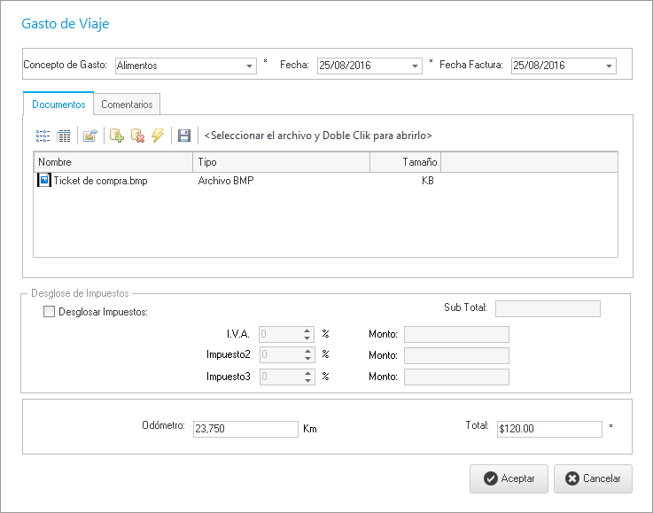 Cada vez que un empleado realiza un viaje ya sea dentro o fuera de la región recibe una determinada cantidad, nunca se puede asegurar cuanto se va a gastar un conductor en un viaje, por lo que a su regreso se realiza una comprobación de gastos para verificar todos los gastos que tuvo que hacer en el transcurso del viaje. Veamos más claramente como se registra un gasto de viaje en el sistema.