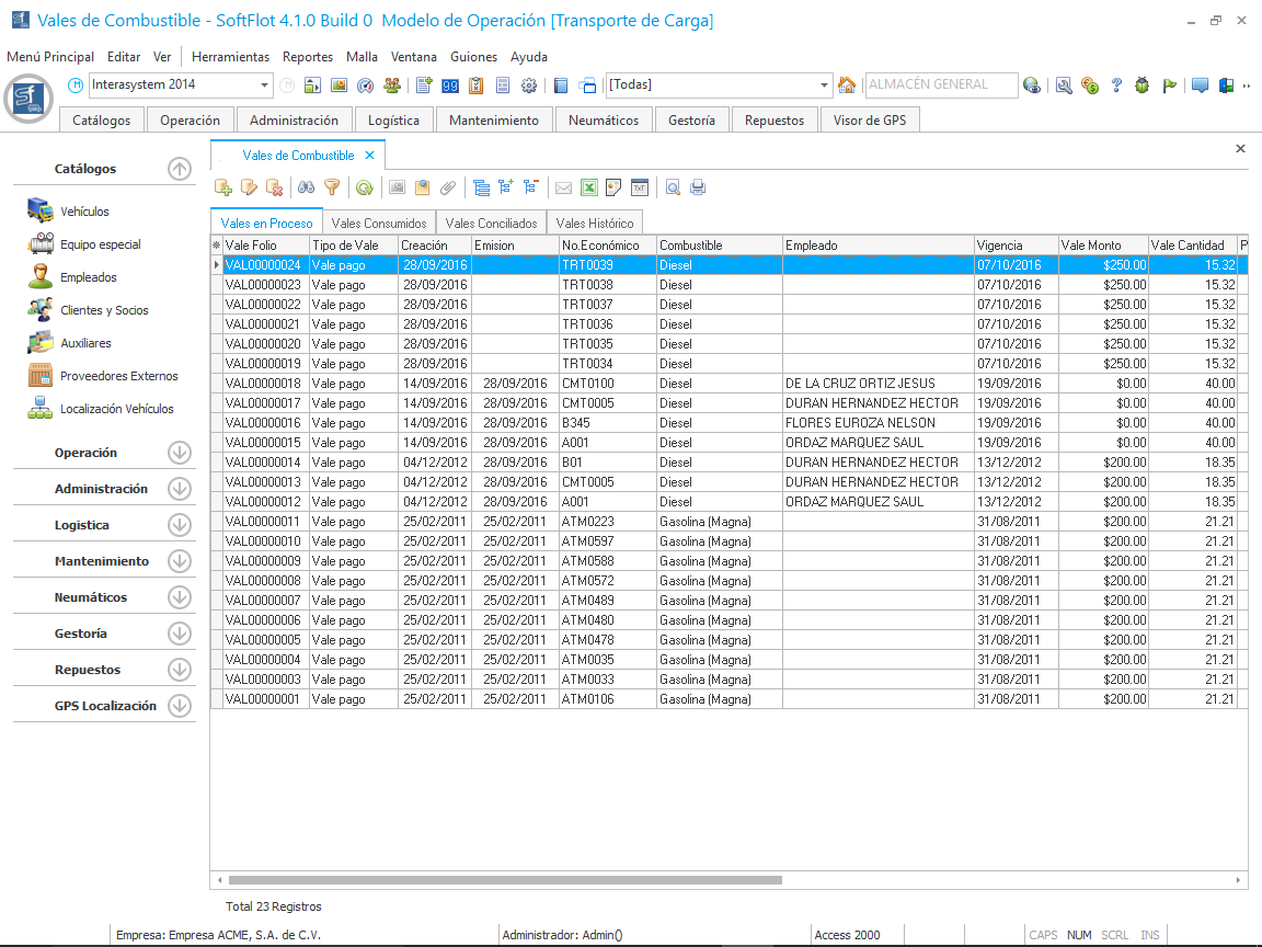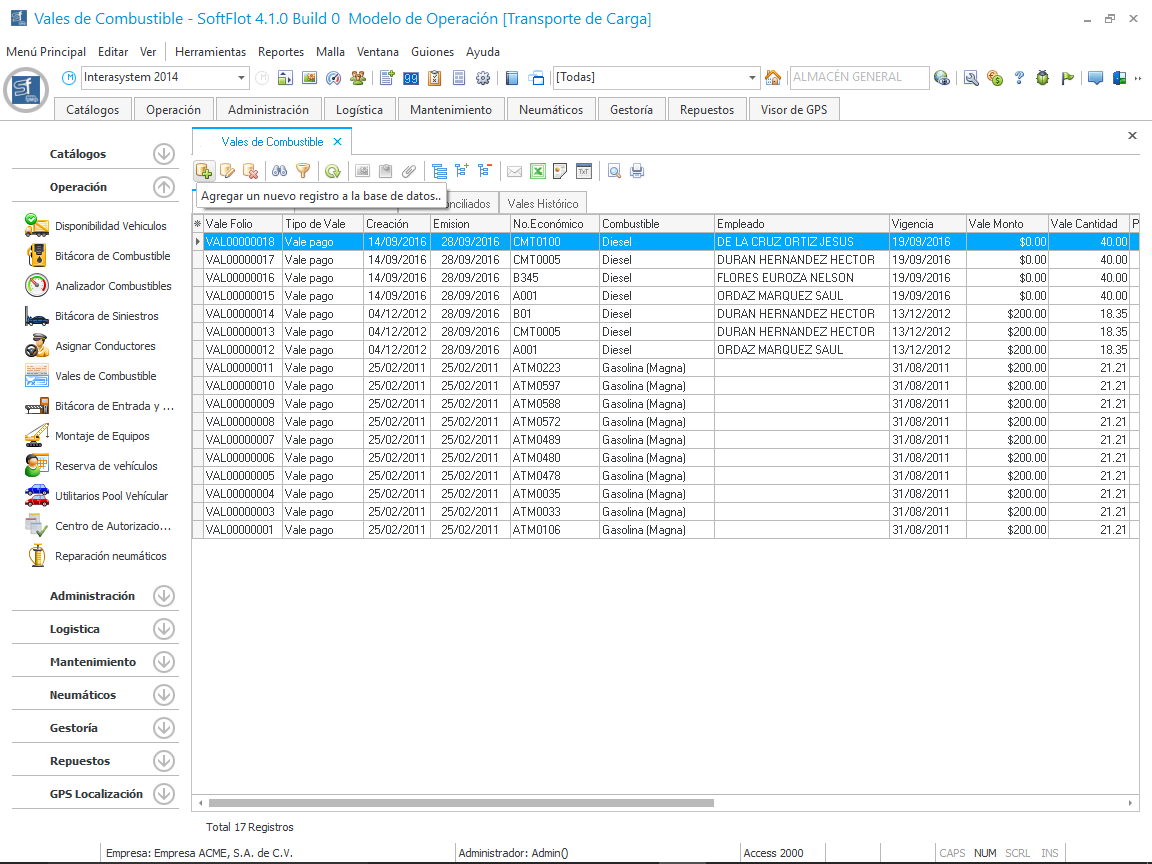 Para generar estos vales, debemos de ir a la malla principal y hacer clic sobre la pestaña